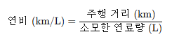 연비 (km/L) = 주행거리 ÷ 소모한 연료량