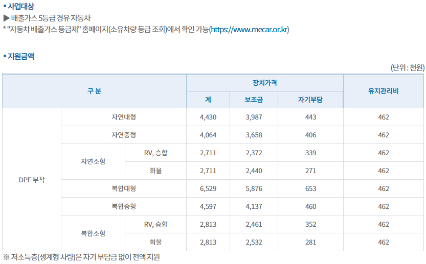✔ 지원 대상: 환경부에서 지정한 노후 경유차