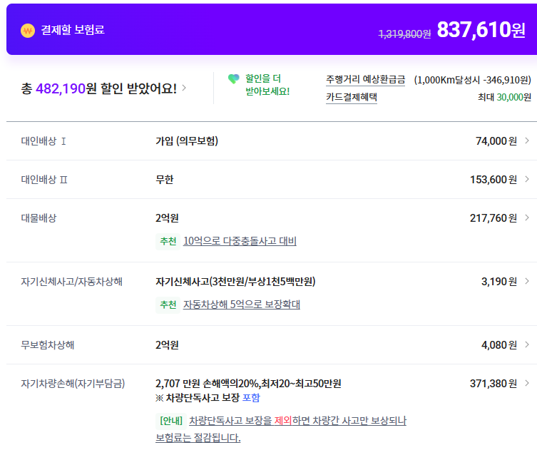 - 주행거리 할인: 연간 주행 거리 적으면 5%~10% 할인.
