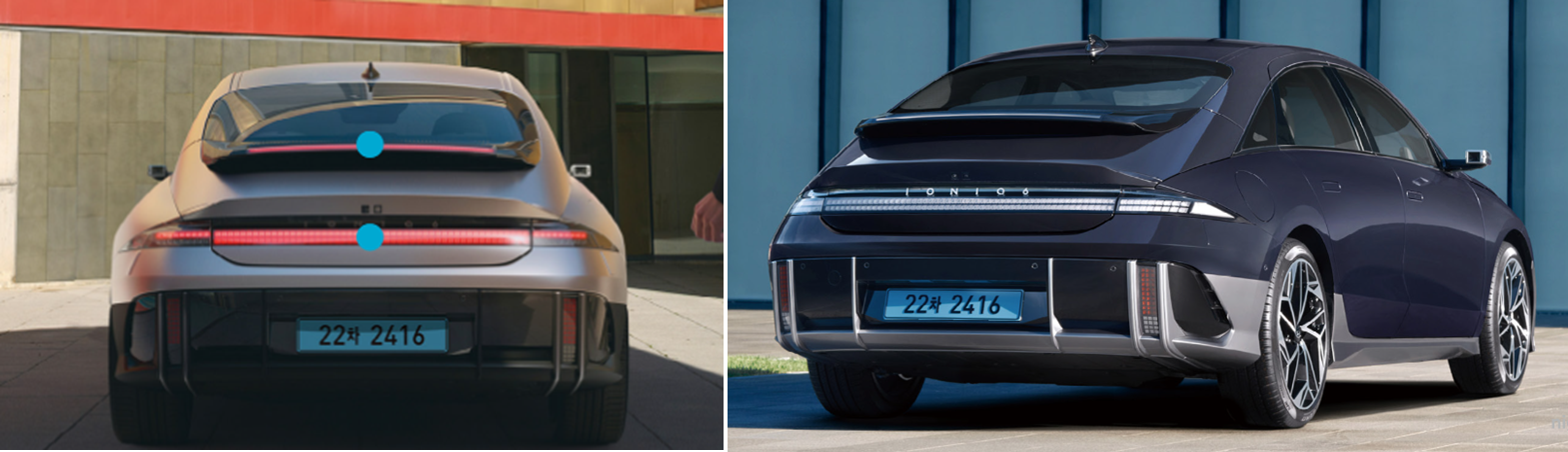 - 아이오닉 6N: 고성능 모델로, 대형 윙 스포일러와 차별화된 범퍼 디자인으로 역동적인 외관 강조.