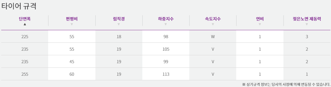 - 저소음 특화 설계: 패턴 블록 간 배열 최적화와 A.I. 빅데이터를 활용한 Multi-Sequence 설계를 적용하여 주행 시 소음을 저감 시킵니다.