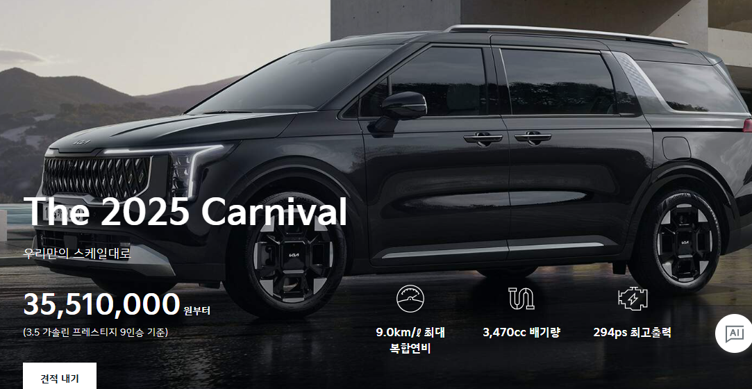 카니발 하이브리드 가격표 정리 (2025년형 기준)