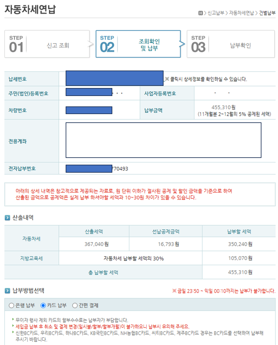 - 미납 시 가산금이 부과되며, 장기간 미납하면 차량 압류 등의 불이익이 발생할 수 있습니다.